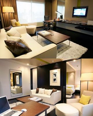 ห้องสไตล์โมเดิร์นแบบนี้เปรียบได้กับงานศิลปะแบบจัดวาง จัดวางสีสันและของใช้ให้พอดีกับห้อง ไม่มากและไม่น้อยเกินไป