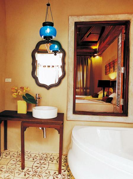 หลายคนหลีกเลี่ยงไม่ใช้เฟอร์นิเจอร์ไม้ในห้องน้ำเพราะกลัวความผุกร่อนเวลาไม้โดนน้ำไปนานๆ แต่หากห้องน้ำนั้นได้แยกพื้นที่ส่วนเปียกและแห้งอย่างชัดเจน เฟอร์นิเจอร์ไม้ก็เป็นตัวเลือกที่ดี ทั้งยังให้ความรู้สึกอบอุ่นและน่าสบาย อาจเลือกใช้ไม้ได้ตั้งแต่โต๊ะวางของ ที่แขวนผ้าเช็ดตัว กระจกติดผนัง และอื่นๆ ซึ่งดูเข้ากันได้ดีกับบ้านสไตล์โอเรียนทอล คอนเทมโพรารี่ หรือโมร็อกโกที่ใช้ไม้เป็นส่วนประกอบในงานตกแต่ง