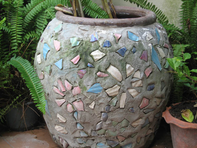 กระเบื้อง เก่าที่เหลือจากการใช้กรุในส่วนต่างๆของบ้าน ลองนำมาประยุกต์เป็นท็อปโต๊ะตัวเก่าดูสิ เลือกลายสวยๆสีเจ็บๆมากรุคละกันก็แปลกไม่เหมือนใครดี ถ้าไม่มีเศษกระเบื้องเลยอาจไปขอซื้อกระเบื้อง ตัวอย่างแค่แผ่นสองแผ่นจากร้านขายวัสดุก่อสร้างก็ได้ ลองพลิกไปดู คอลัมน์ “ช่างสรร” หน้า 269 ก็ได้ เผื่อจะได้ไอเดียกระเบื้องดี ราคาถูก