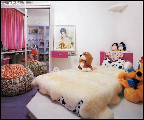 ห้องนอนจัดไว้อย่างสวยงาม น่ารักทีเดียวปูด้วยพรมหนังแกะสีขาว ตกแต่งด้วยตุ๊กตา ของเล่นมากมาย