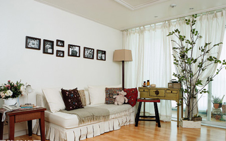 2. ห้องรับแขกควรอยู่ตรงกับประตูใหญ่พอดี ใช้โซฟาสีฟ้าหรือสีชมพูอ่อนส่งเสริมให้อบอุ่น