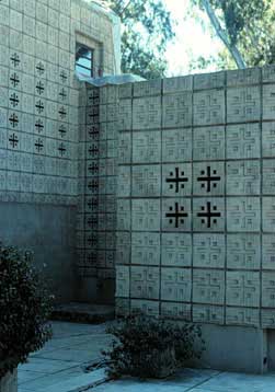 แต่ Frank Lloyd Wright กลับมีแนวคิดตรงกันข้ามกับสถาปนิกในยุคนั้น เขามองเห็นคุณลักษณะด้านดีของคอนกรีตบล็อกที่มีเสน่ห์ดึงดูดน่าสนใจ Wright เห็นว่าหากเขาดึงเอาความเป็นตัวตนของคอนกรีตบล็อกออกมาได้ วัสดุชนิดนี้จะกลายเป็นวัสดุที่สามารถแสดงความงดงามที่สุดในงานสถาปัตยกรรมได้เช่นกัน