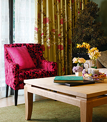 ให้ไม่มั่นใจจนเกินไปนั้นอยู่ที่การเลือกใช้คู่สี และแม้แต่เนื้อวัสดุนั้นๆ เองที่ทำให้ความสดแจ่มนั้นโดดเด่นหรือเบาบาง หรูหราหรือเต็มอิ่ม การใช้ Contrast เยอะๆ Combination ที่ดีๆ ก็อยู่ด้วยกันดี เข้ากันได้อย่างเช่นผ้ากำมะหยี่หรือผ้าซาตินเนื้อเรียบที่เล่นเหลือบล้อกับแสงอย่างแยบยล พรางด้วยลวดลายที่ถึงจะมากแต่ก็พอเหมาะกับสุนทรียภาพและรสนิยม
