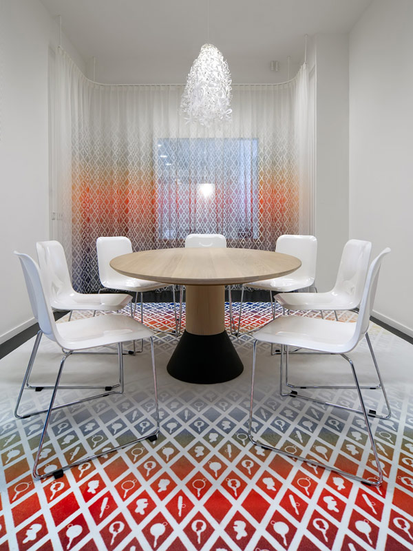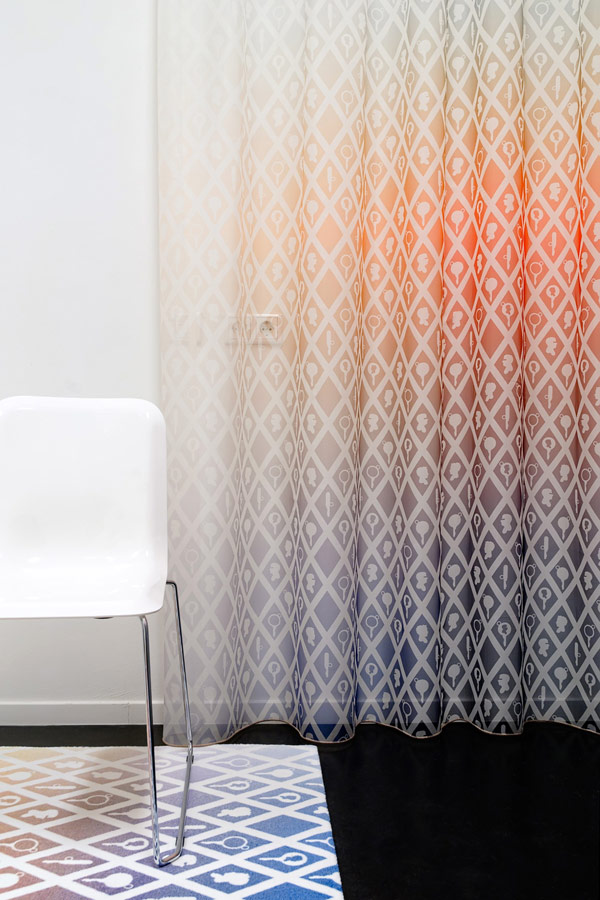 ออกแบบโดย Thomas Eurlings เขาได้สร้างพรมจากชุดแม่เหล็กที่จะจางหายตามแนวตั้งที่ให้ภาพลวงตา การออกแบบในครั้งนี้เป็นการเพิ่มความสูงของเพดานและเพื่อเพิ่มความเบากว่าความเป็นจริง ตามที่ Thomas Eurlings ได้พูดไว้ว่า ผ้าม่านไล่ระดับสีผพรมได้พัฒนาให้ใช้สำหรับสำนักงานใหญ่ ใน Eindhoven ประเทศเนเธอร์แลนด์  เป็นการคิดสร้างสรรที่มีมุมมองที่เปลี่ยนแปลงใช้สำหรับตกแต่งไม่เพียงแค่เพิ่มพื้นที่เท่านั้น ยังนำสีสันที่สัมผัสได้เช่นกัน