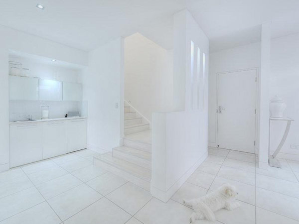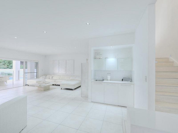 การตกแต่งภายในบ้านเน้นสีขาว ทำเพดานให้สูงโปร่ง อากาศถ่ายเทโล่งสบาย พื้นบ้านก็เป็นสีขาวทำให้บ้านยิ่งดูโล่งและกว้างมากขึ้น เฟอร์นิเจอร์เน้นโทนขาวทั้งหมด มีสีไม้อ่อนๆตัดเล็กน้อย