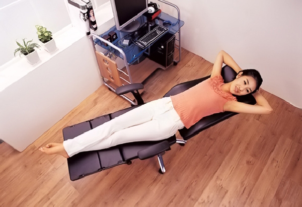 เป็นการออกแบบเก้าอี้เพื่อใช้สำหรับสำนักงานเพื่อให้พนักงานนั้นได้สามารถผ่อนคลายได้จากการอ่อนล้าที่มาจากการทำงาน เก้าอี้ตัวนี้นั้นเวลาใช้งานสำหรับการผ่อนคลายนั้นก็เพียงแค่เอนไปด้านหลังก็สารมารถผักผ่อนได้เลยละค่ะ คงสะบายสุดๆ ลองไปดูกันค่ะว่าเก้าอี้ตัวนี้จะสะบายขนาดไหน