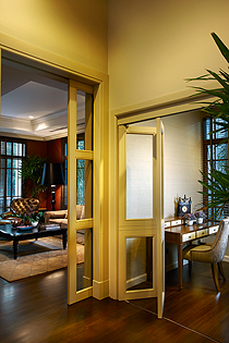 ส่วนของบานหน้าต่างหรือประตูที่เป็นวัสดุทึบแสง ก็อาจปรับเปลี่ยนโดยกรุด้วยกระจกใสตัดแสง เพื่อเปิดมุมมองและสร้างความรู้สึกโล่งโปร่งแทน ส่วนโทนสีโดยรวมของบ้านนั้น ก็ควรเลือกตกแต่งคุมโทนสีของพื้น ผนัง เพดานและเฟอร์นิเจอร์ให้เป็นไปในทิศทางเดียวกัน เพื่อให้แลดูสะอาดตา รวมทั้งเพิ่มโทนสีเด่นเป็นเฉดสีในวรรณะเย็น เช่น สีฟ้าหรือสีเขียวช่วยให้บรรยากาศภายในบ้านแลดูสดชื่นสบายตา
