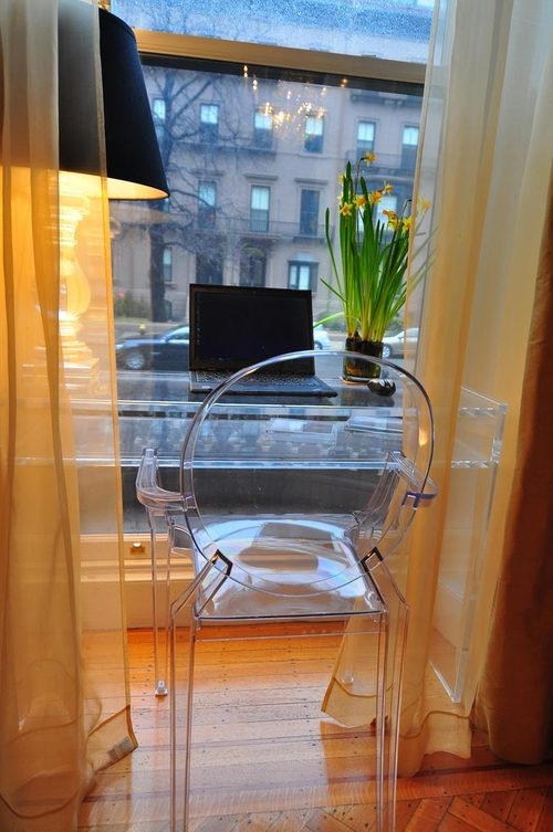 มุม เล็กๆ ดูไม่เกะกะด้วยเก้าอี้-โต๊ะใส