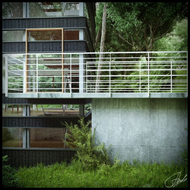 เป็นโครงสร้างการออกแบบของ  Ando Studio ที่เขาได้ออกแบบบ้านที่ตั้งอยู่ในสภาพแวดล้อมในป่าไม้ที่เป็นธรรมชาติสุดๆ ซึ่งเป็นการเหมาะสำหรับเพื่อนๆ ที่กำลังมองหาที่พักผ่อนในแบบที่ต้องการจะหนีชีวิตในเมืองที่มีความวุ่นวายและเสียงดัง มาอยู่ในที่ที่สงบแต่การตกแต่งและออกแบบภายในนั้นทันสมัยใช่ย่อย