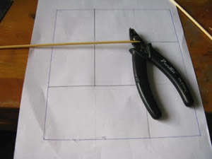 2. ตัดไม้ให้ได้ขนาดและวางเป็นกรอบด้านนอกก่อนดังภาพ และใช้ปืนกาวติดกาว ณ จุดต่อของไม้