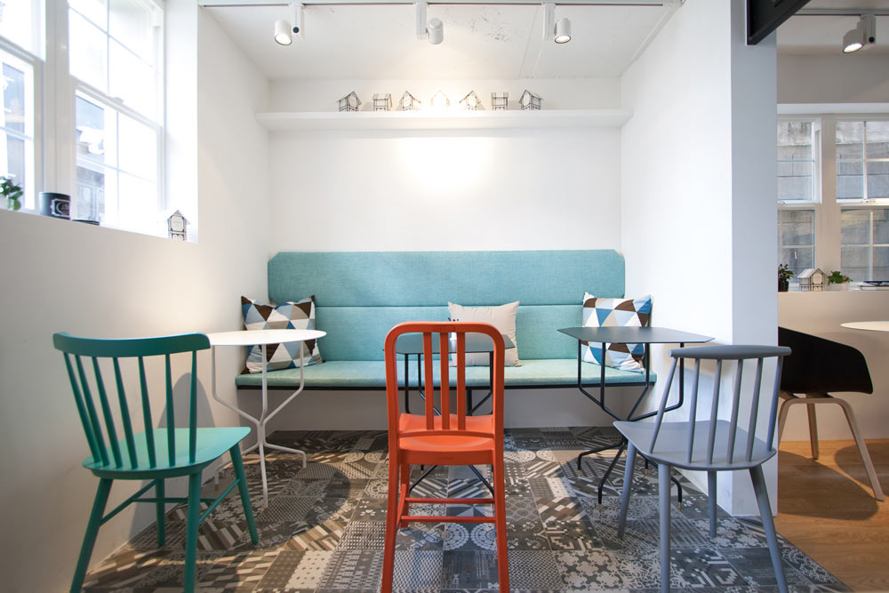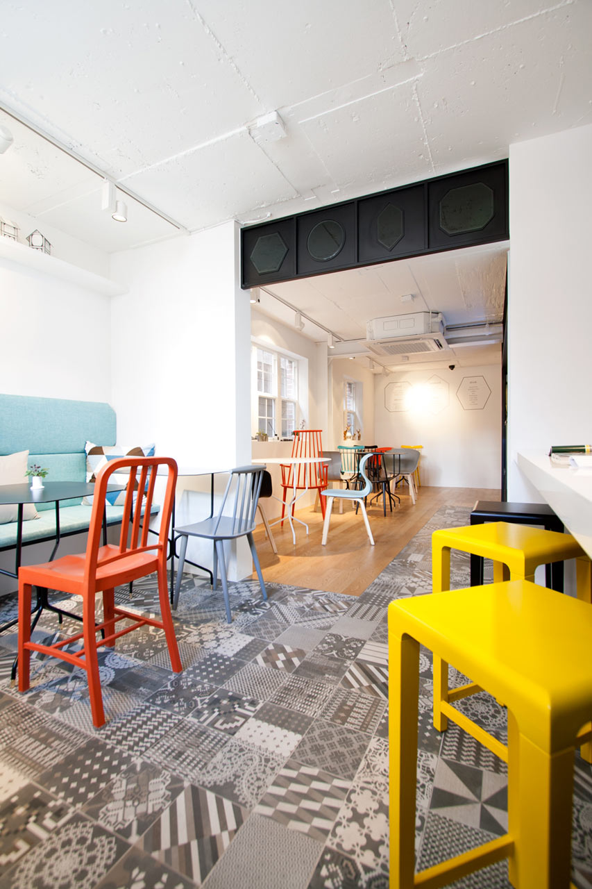 พื้นที่ในร้านเต็มไปด้วยส่วนผสมของรูปทรงและสีเช่นเดียวกับการออกแบบและจุดเอกลักษณ์สำคัญของร้านคือ "เก้าอี้" มีการผสมผสานความหลากหลายขอเก้าอี้ ที่มีความแตกต่างไม่เข้าชุดกัน บ่งบอกความไม่เป็นทางการมากของร้าน ให้ความรู้สึกเหมือนนั่งเล่นที่บ้านเพื่อน