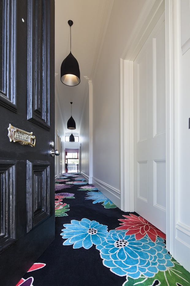สำหรับพื้นห้องโถงทางเดินนั้นจะทำลวดลายของดอกไม้ที่มีสีสันสวยงามสดใส ทำให้ทางเดินนั้นมีจุดโฟกัสที่น่าสนในทีเดียวและยังตรงกับคอนเซ็ปส์ บ้านก้อนเมฆอีกด้วย