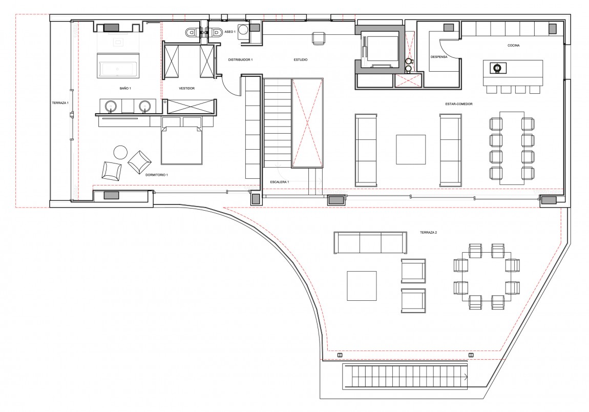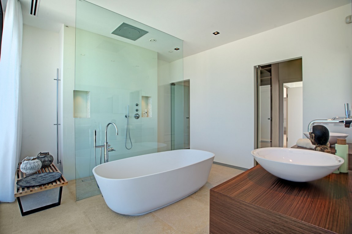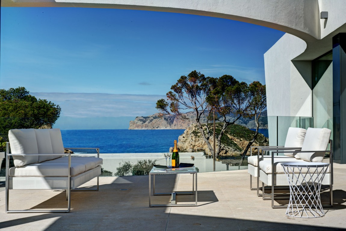 สถาปัตยกรรมโดยรวมของบ้านก็คือการผสมผสานที่ดีของความร่วมสมัยที่มีความหมาย Midcentury (ไม้และโลหะมีบทบาทสำคัญในการตกแต่งภายใน) ทั้งนี้ส่วนที่ดีที่สุดของบ้านคือการเปิดมุมมองที่สวยงามของชายฝั่งทะเลเมดิเตอร์เรเนียนที่มีหาดทรายและน้ำทะเลสีฟ้าคราม