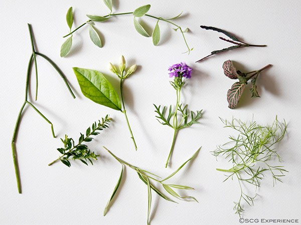 เลือกต้นไม้ที่มีใบละเอียดและมีดอกสีขาวสลับกับไม้ใบสีสดให้ความหลากหลายแต่ยังรู้สึกกลมกลืนกัน