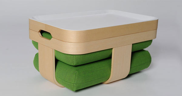 เป็นดีไซน์เฟอร์นิเจอร์อเนกประสงค์ที่สามารถใช้งานได้หลากหลาย เพราะใช้ได้ทั้งเป็นโต๊ะวางอาหารเครื่องดื่ม เบาะนั้นยังเป็นหมอนอิงได้อีก