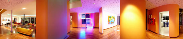 เป็นบ้านที่ตั้งอยู่อย่างสง่าและเป็นจุดเด่นของรอบๆ บริเวณนั้นเพราะใช้สีที่จัดจ้านและสว่าง