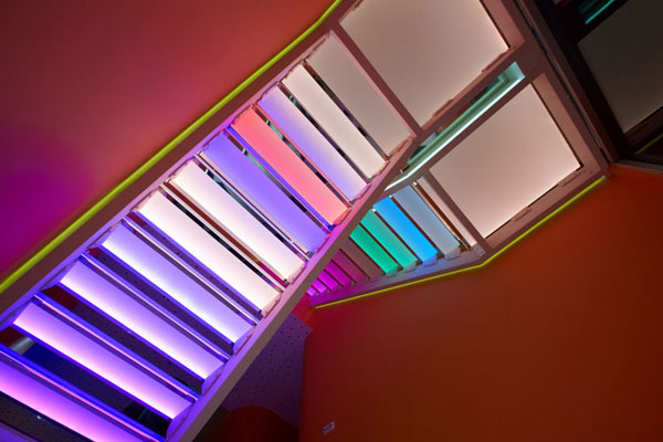 สำหรับบันไดทางเดินนั้นจะเป็นแผ่นใสเวลาเปิดไฟจะเป็นสีทีสะท้อนขึ้นมาอย่างสวยงาม