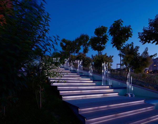 น้ำพุนี้จะทำขึ้นจากหลอดไฟซึ่งทำให้ดูเป็นบ้านที่โมเดิร์นมากขึ้น