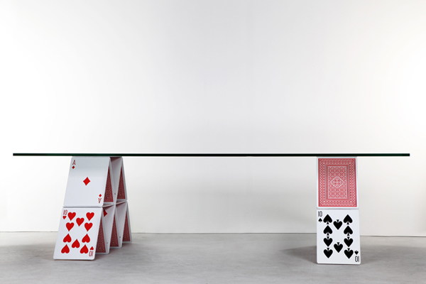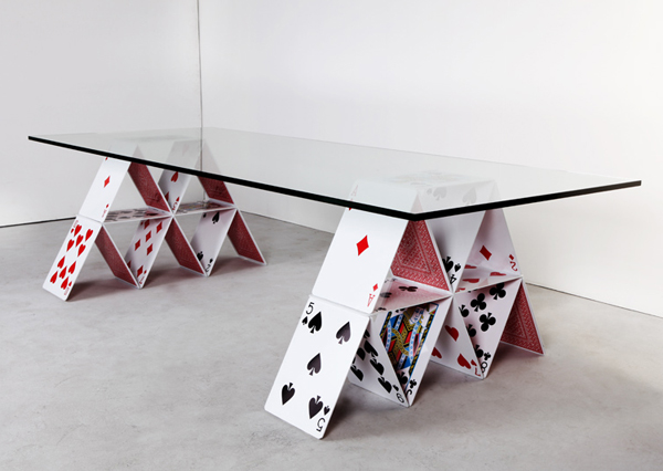 วันนี้ homedecorthai ขอนำเสนอโต๊ะที่ไอเดียเริดมาก ของนักออกแบบชาวบราซิล  Mauricio Arruda ที่เขาได้ให้ความน่าตื่นเต้นและความคิดสร้างสรรค์ที่น่าสนใจทีเดียว ด้วยการนำไพ่มาทำเป็นขาโต๊ะได้อย่างสะดุดตามากค่ะ ลองไปดูผลงานกันต่อเลยค่ะ