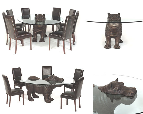 ซึ่งจะใช้รูปสัตว์มาทำเป็นโต๊ะอาหารเช่นตัวนี้จะใช้แรดในการทำขายืนของโต๊ะซึ่งดูแล้วเหมือนกำลังโผล่พ้นน้ำ