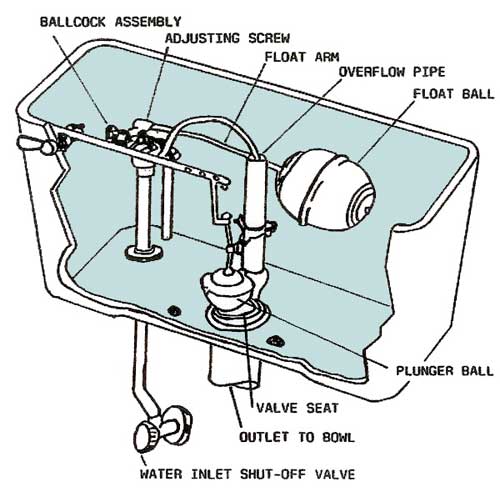 1. โถชักโครกแบบ Flush Tank จะต้องหมั่นตรวจสอบดูแลอุปกรณ์ที่อยู่ในถังพักน้ำ ซึ่งมักจะมีปัญหาเช่น ตั้งคันโยก ไว้ต่ำเกินไปแหวนยางเสื่อมทำให้น้ำรั่วหรือมีน้ำไหลตลอดเวลา