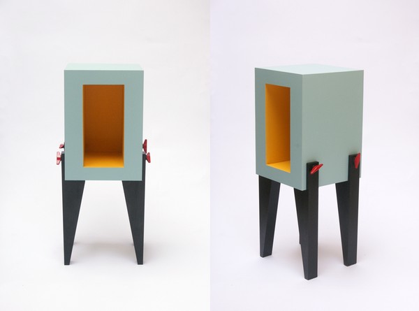 เป็นขาล็อก ซึ่ง Marcela Casarotto ได้ดีไซน์ไว้ให้ชั้นวางที่มีความแข็งแรงและทนทาน สามารถปรับและโยกย้ายได้