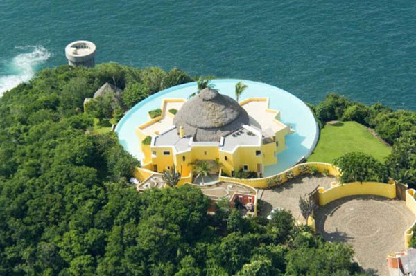 บ้านพักตากอากาศที่สุดหรูบนเกาะที่ล้อมรอบไปด้วยสระน้ำที่เป็นวงกลม