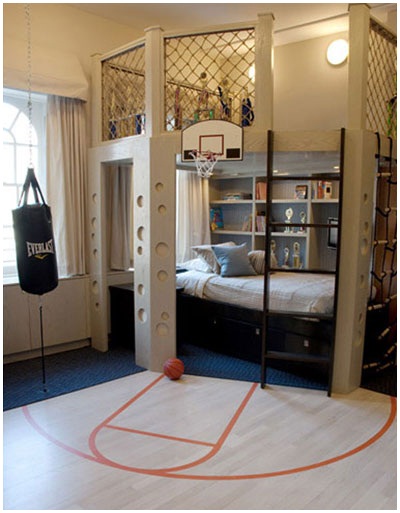 วันนี้เรามีห้องนอนที่เหมาะกับผู้ชายสไตล์สปอร์ตแมนมาฝากค่ะ เพราะในห้องนอนจะเต็มไปด้วยเครื่องออกกำลังกาย ไม่ว่าจะ ชกมวย, บาสเก็ตบอล หรือแม้กระทั่งปีนหน้าผา ห้องนี้ได้จำลองมาไว้ให้หนุ่มๆได้ฟิตแอนด์เฟิร์มกันได้ทั้งวันเลยล่ะคะ ไม่ต้องเสียเวลาออกไปฟิตเนสนอกห้องให้ยากแล้ว แบบนี้เรียกว่าสุดยอดมั้ยค่ะ กิจกรรมเพียบ!!