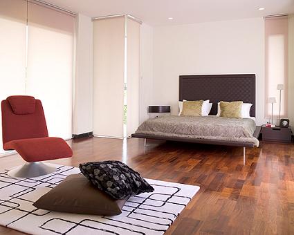 ห้องนอนแนวร่วมสมัยไม่จำเป็นต้องเน้นที่ความโปร่ง สีขาวสว่างตา หรือเน้นที่ลายกราฟฟิคเสมอไป เราอาจแต่งห้องนอนแนวนี้ได้ด้วยสีเอิรท์โทนที่ให้ความรู้สึกสงบเงียบ และอบอุ่นยามพักผ่อน แต่สังเกตุว่าของประดับทั้งหมดยังคงเน้นที่ความเรียบง่าย ตกแต่งน้อยชิ้นไม่หวือหวา ให้ความรู้สึกพักผ่อนได้อย่างเต็มที่ บางครั้งการตกแต่งห้องนอนที่ดูหรูหรา วิจิตรบรรจงมากเกินไปนั้นก็อาจจะทำให้ดูอึดอัดได้เช่นกัน