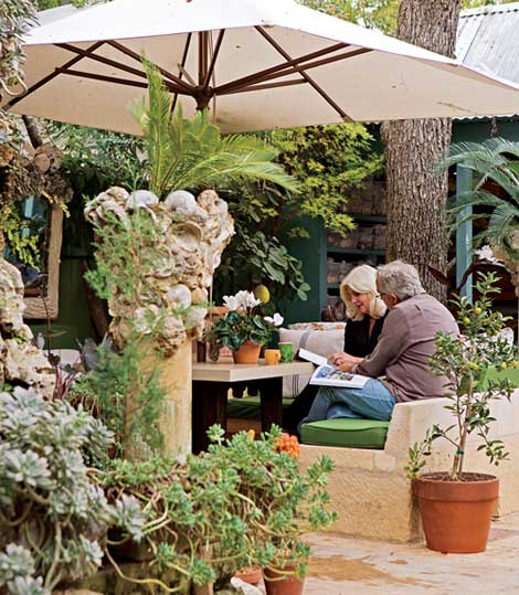 ด้านหน้าของสวนที่น้ำพุทำมาจากเปลือกหอย