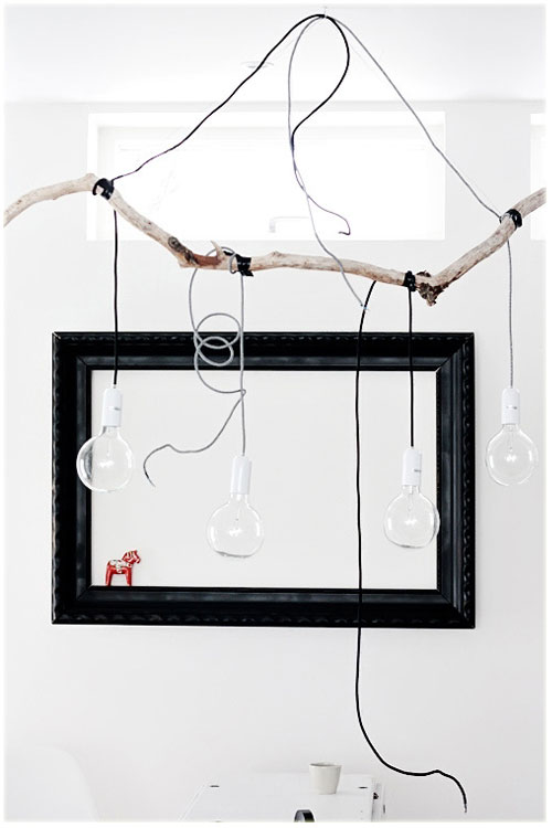 ไอเดีย โคมไฟเพดานจากกิ่งไม้สุดโมเดิร์น ที่นำกิ่งไม้มาเพิ่มไอเดียเก๋ๆโดยการนำหลอดไฟมาพันแขวนไว้ จะห้อยไว้ห้องทำงานหรือห้องทานข้าว ก็ดูโมเดิร์นไม่น้อยเลยนะคะ ง่ายๆแบบนี้ต้องลอง ทำด้วยตัวเองดูแล้วละค่ะ