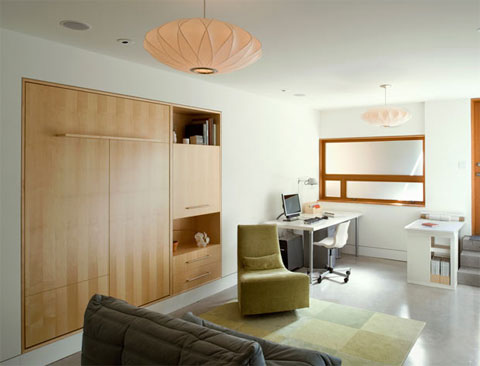 นอกจากนี้ เฟอร์นิเจอร์บางชิ้นที่อาจจะปรับเปลี่ยนไม่ได้ แต่มี Function ร่วมได้ เช่น โซฟาขนาดใหญ่ ที่ผมเคยไปเห็นมา พอนำมาวางในห้องชุดแล้ว จะดูสวยงามและเป็นโซฟาที่คนสามารถไปนั่งเล่น นอนเล่นได้ และรับแขกที่สนิทๆ กันได้ แต่พอตกกลางคืน เจ้าของบ้านก็สามารถปูผ้าปูที่นอน กลายเป็นเตียงนอนไปได้เลย ดูดีไปอีกแบบครับ  เมื่อหลายปีก่อน ผมเคยเห็นเตียงนอนที่สามารถเก็บซ่อนในตู้ได้ ซึ่งก็ทำให้ห้องขนาดเล็กๆ กลายเป็นห้องรับแขกในตอนกลางวัน และกลายเป็นห้องนอนในตอนกลางคืน เพียงแต่เปิดตู้และดึงเตียงลงมาเท่านั้น อย่างไรก็ดี อุปกรณ์ที่ใช้ดังกล่าวมีราคาค่อนข้างแพง และไม่ทนทาน หากต้องใช้งานทุกวัน ยังเสี่ยงที่จะทำให้เจ้าของบ้านปวดหลังได้อีกด้วย