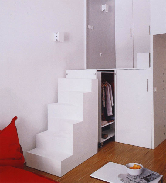 4. การเพิ่มพื้นที่ส่วนเก็บจากพื้นที่ว่างต่างๆ เช่น การดัดแปลงส่วนใต้ที่นั่งให้กลายเป็นตู้เก็บของหรือตู้เก็บรองเท้า หรือการทำพื้นยกระดับที่สามารถเปิดขึ้นมาได้และใช้พื้นที่ด้านล่างเป็นส่วนเก็บของเบ็ดเตล็ดทั้งหลาย นอกจากจะเป็นการเพิ่มประโยชน์ใช้สอยอย่างชาญฉลาดแล้ว ยังเป็นการเพิ่มมิติให้กับห้องได้อย่างดีอีกด้วย