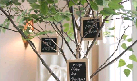 ไอเดียติดบร็อดเล็กๆไว้สำหรับบันทึก หรือเขียนเรื่อวราวดีๆในบ้าน บนต้นไม้ใหญ่ที่ประดับมุมห้อง
