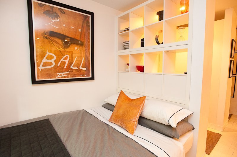 ไอเดียตกแต่งคอนโดสไตล์โมเดิร์น สีเทาอ่อนภายในทำให้ห้องดูโปร่ง เลือกใช้เฟอร์นิเจอร์แบบอเนกประสงค์ เน้นประโยชน์การใช้งาน
