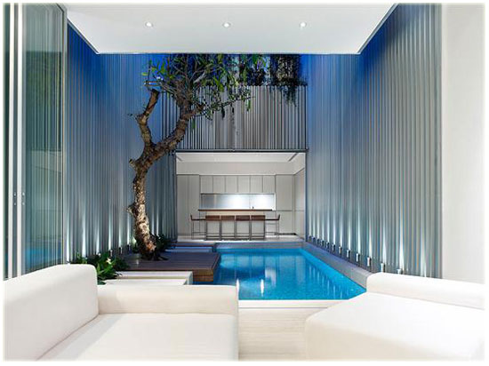 บ้านสวยหลังเล็กดีไซน์เน้นความเป็นไลฟ์สไตล์ด้วยการสร้างสีสันของบ้านด้วยธรรมชาติและความกลมกลืนกันกับสระว่ายน้ำที่อยู่ภายในตัวบ้าน องค์ประกอบที่ทำให้บ้านสมบูรณ์แบบมีอีกมากมายหลากหลายวิธี ไม่ว่าจะเป็นการสร้างสวนสวยๆเล็กๆ ในบ้านเพิ่มบรรยากาศความเป็นธรรมชาติ น้ำตกสวยๆไหลผ่านใกล้ๆกับห้องนั่งเล่นหรือแม้แต่การสร้างสรรค์งานเก๋ๆด้วยการน้ำสระว่ายน้ำเข้ามาอยู่ภายในตัวบ้านเหมือนอย่างที่เรากำลังนำเสนอบ้านโมเดิร์นหลังเล็กกับสระว่ายน้ำอินดอร์หลังนี้ที่ออกแบบดีไซน์ในสิงคโปร์โดย OngOng