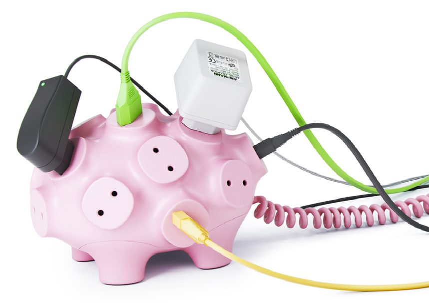 ไอเดียปลั๊กพ่วง “Piglet Power Source” โดย Lebedev Studio ซึ่งพกพาความน่ารักมาเต็มกระเป๋าด้วยรูปทรงหมูน้อยสีชมพูที่เต็มไปด้วยจมูกรอบตัวค่ะ