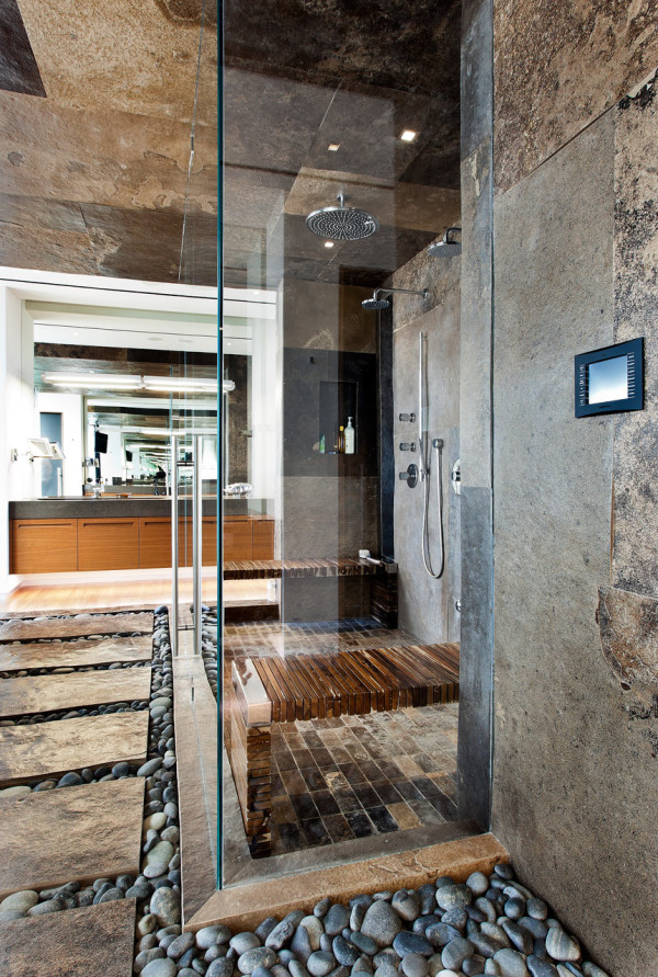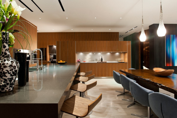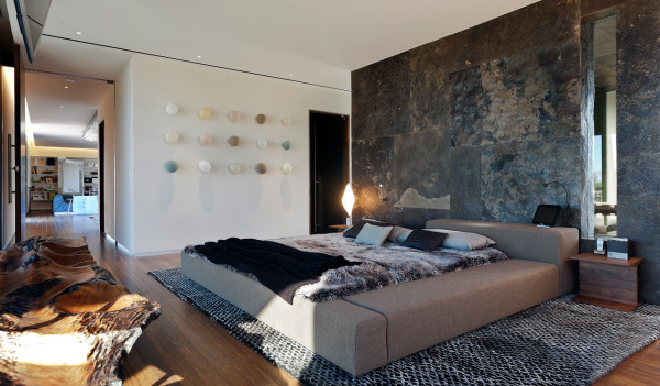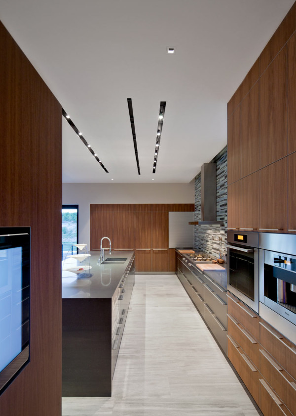 เป็นการออกแบบที่ดูสวยหรูเรียบง่าย ร่วมสมัย ภายตกแต่งผนังโดยการก่ออิฐ เน้นโชว์พื้นผิว พื้นที่รับประทานอาหารเชื่อมต่อกับห้องครัวและห้องนั่งเล่น เปิดโล่งถึงกันหมด ทำให้ดูกว้างขวาง และยังมีสระว่ายน้ำที่ล้อมรอบด้วยสีเขียวของสวนเพื่อเพิ่มความสดชื่นให้กับบ้านอีกด้วย