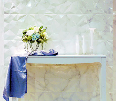 กระเบื้องที่ได้แรงบันดาลใจจากความสวยงามของหินอ่อน ซึ่งเป็นชนิดพิเศษที่มีความขาวเรียบเนียน ศิลปินส่วนใหญ่นิยมนำมาใช้ในงานประติมากรรม เมื่อผ่านกระบวนการผลิตที่ทันสมัย จึงสามารถถ่ายทอดสีสันและลวดลายหินอ่อนบนแผ่นกระเบื้องได้อย่างสมจริง