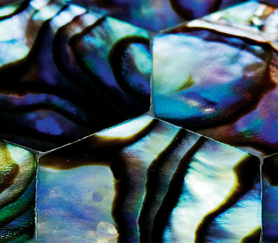 กระเบื้องที่ตกแต่งด้วยเศษเปลือกหอยมีหลากหลายรูปแบบ เช่น ลายอิฐ และสี่เหลี่ยมผืนผ้า ของบริษัทมิราเคิลเพิร์ล จำกัด ขนาดมาตรฐาน 2x2 นิ้ว สามารถรองหลังด้วยเซรามิก ไฟเบอร์กลาส ไม้ หรือหินอ่อน มีเปลือกหอยให้เลือกหลากหลายชนิด สามารถปูได้ทั้งพื้นและกรุผนัง ทั้งห้องน้ำ ห้องนั่งเล่น