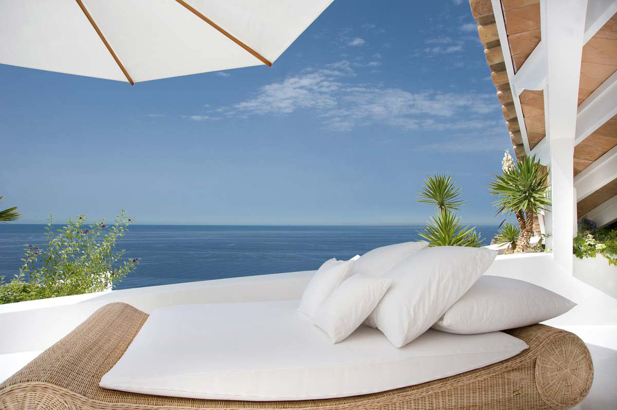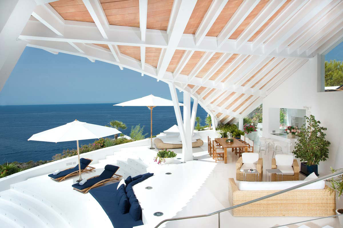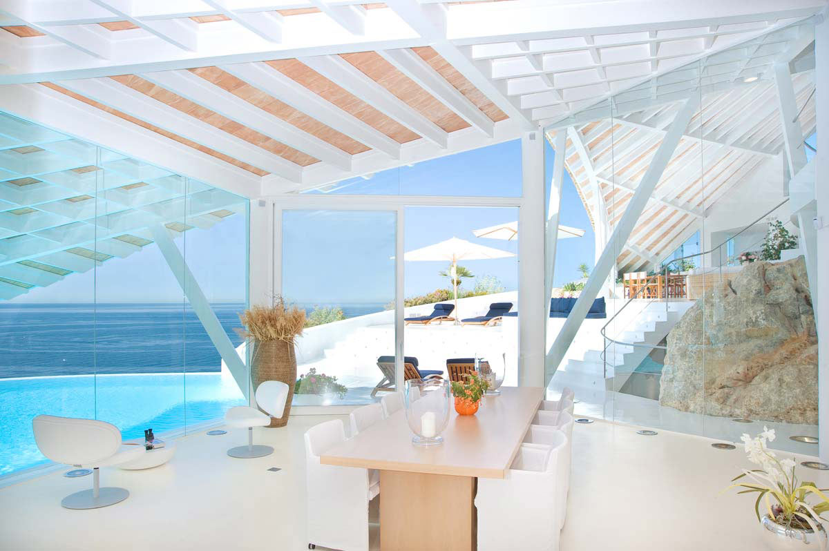 ไอเดียการดีไซน์บ้าน แบบเมดิเตอร์เรเนียน ส่วนใหญ่มักเป็นบ้านชายทะเล ตัวบ้านสีขาว ดีไซน์แบบเปิดโล่ง และเปิดให้เห็นวิวชายหาดและทะเลที่สวยงาม น้ำทะเลและท้องฟ้าสีฟ้าคราม ตัดกับสีบ้านและเฟอร์นิเจอร์สีขาว โชว์ทัศนียภาพอันน่าหลงไหลได้อย่างลงตัว