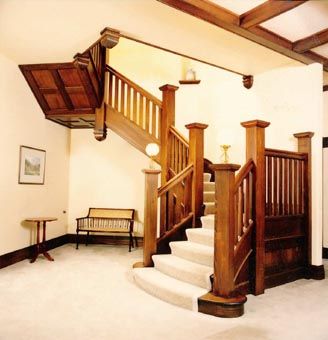 "บันไดบ้าน" ในทางฮวงจุ้ยถือเป็นจุดที่มีความสำคัญมาก เพราะเป็นจุดเชื่อมต่อระหว่างชั้น เป็นการถ่ายเทชี่จากชั้นล่างขึ้นสู่ชั้นบน ถ้าวางตำแหน่งบันไดผิด ย่อมส่งผลเสียอย่างแน่นอน  กรณีที่จำเป็นจะต้องทำบันไดบริเวณประตูทางเข้าบ้าน ให้เลี่ยงมาทำด้านข้างแทน เพื่อให้บริเวณหน้าประตูเป็นชานพัก แต่ต้องระวังอย่าทำบันได 2 ข้าง ในลักษณะเดินขึ้นข้างหนึ่ง แล้วไปลงอีกข้างหนึ่ง จะเข้าข่ายบันไดเมรุเผาศพ คนโบราณถือว่าอัปมงคลยิ่ง