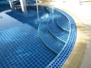 - สีกระเบื้องที่ช่วยให้สระว่ายน้ำดูเป็นธรรมชาติได้แก่ สีฟ้า สีเทอร์คอยส์ หรือสีเขียวแบบสีน้ำทะเล ส่วนกระเบื้องสีเข้มอย่าง สีดำ สีน้ำเงินเข้ม จะทำให้เรารู้สึกว่าสระว่ายน้ำดูลึกและมีมิติมากกว่า อีกทั้งยังเป็นสีที่สามารถทำให้ผิวน้ำในสระสะท้อนเงาของตัวบ้านได้ชัดเจนด้วย