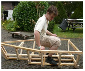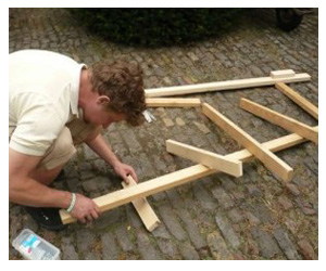ขั้นตอนแรก   เริ่มจาก นำไม้อัดมาวางเป็นโครง สามารถปรับขนาดความกว้างและยาวของเรือได้ตามต้องการ ดังภาพ