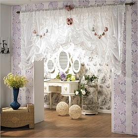 คือหลุยส์ จะมีการเลือกผ้าชนิดหนึ่งกับการจับริ้วผ้าอันเป็นส่วนตกแต่งประกอบตอนบนของหน้าต่างให้เป็นเหมือนคลื่นพลิ้วซ้อนเป็นชั้น ๆ แต่ละสมัยก็ไม่เหมือนกันหรือแบบตะวันตกแต่เป็นแบบสมัยใหม่อาจใช้วิธีซ่องรางม่านไว้ในเพดาน จะไม่ค่อยนิยมทำเป็นระบายผ้าเพื่อบังรางม่าน จะเป็นแบบเรียบ ๆ ผ้าก็มีลวดลายไม่เด่นชัดมากนัก หรืออาจเป็นการใช้ม่านปรับแสง เป็นแบบแนวตั้งหรือแนวนอนก็ได้ เดี๋ยวนี้เขามีแบบบางมากจนแทบจะไม่บังสายตาเวลาเปิดออกเต็มที่แล้ว การตกแต่งแนวสมัยใหม่จะนิยมม่านเหล่านี้มาก