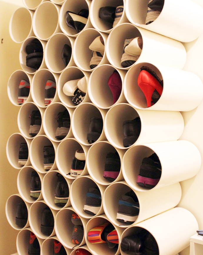 5.ชั้นวางรองเท้าแบบไม่ซ้ำใครจากท่อ PVC
