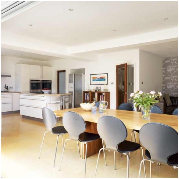 ลองจัดเก้าอี้เป็นตัวรี ไม่ต้องใช้โต๊ะใหญ่มาก ให้หันไปทางด้านยาวของบ้าน
