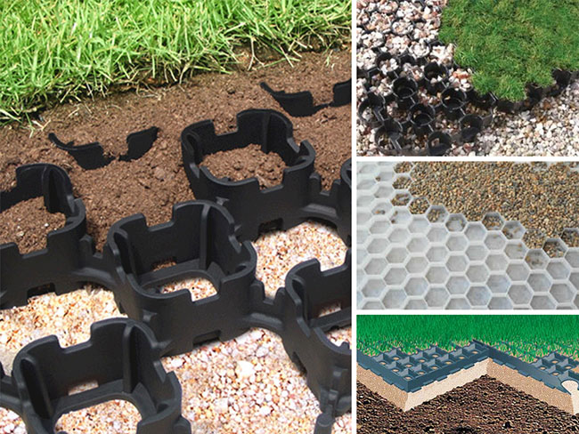 ถ้านำหินคลุกมาเทเกลี่ยบนดินเลย พอใช้ไปไม่นานหินจะจมลงในดินไปเรื่อยๆ ตามแนวที่ล้อรถหมุนทับ ดังนั้น จึงควรใช้บล็อกพลาสติกที่เรียกว่า “Grass Grid” ซึ่งมีลักษณะเป็นเซลล์ (Cells) หลาย ๆ ชิ้นมาต่อยึดกัน วางบนพื้นดินที่บดอัดแน่น โดยปูด้วยแผ่น Geotextile ก่อนเพื่อป้องกันไม่ให้หินจมลงไปในดิน บล็อก Grass Grid นี้เป็นการเสริมความแข็งแรงให้ชั้นหินคลุก โดยจะช่วยยึดชั้นหินคลุกให้ขยับตัวน้อย ไม่กระจุยกระจาย เวลาที่ล้อรถหมุนผ่าน