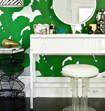 สไตล์นี้จะออกแนว Hollywood หน่อยๆ สังเกตจากโคมไฟ ลายกราฟฟิคของวอลล์เปเปอร์ และ stool ที่ออกแบบมาให้ดูเหมาะกับห้องแต่งตัวของนางโชว์ หรือดาราฮอลลีวู๊ดสมัยก่อนเลย