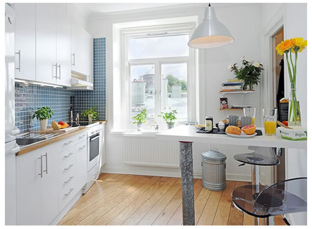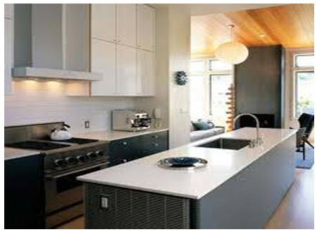ห้องครัว เป็นที่สำหรับประกอบอาหาร การเลือกอุปกรณ์มาตกแต่งในครัวเป็นสิ่งจำเป็น เพราะเราต้องใช้โต๊ะประกอบอาหาร และพื้นนที่ตรงส่วนนี้เป็นส่วนสำคัญและใช้งานมากที่สุดในการประกอบอาหารจึงควรทำให้พื้นที่บริเวณนี้กว้างพอ สำหรับการจัดเตรียมอาหาร วางอุปกรณ์ต่างๆ ด้านบนของโต๊ะอาจปูด้วยกระเบื้องเซรามิก สแตนเลสหรือหินอ่อน ใช้ไม้หรือแผ่นเหล็กบางๆ เป็นที่เก็บของ อาจจะเก็บขวดต่างๆ ก็ได้